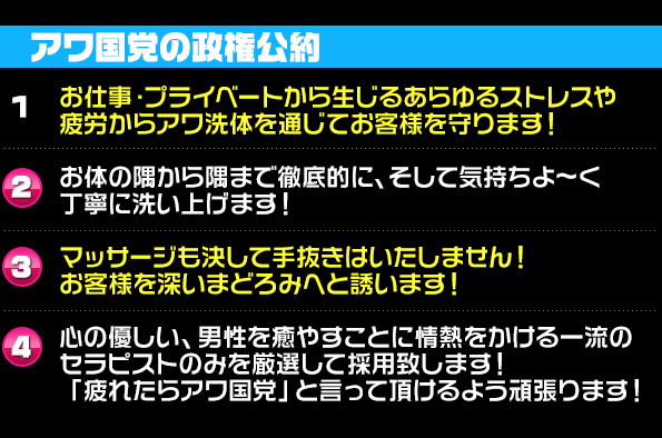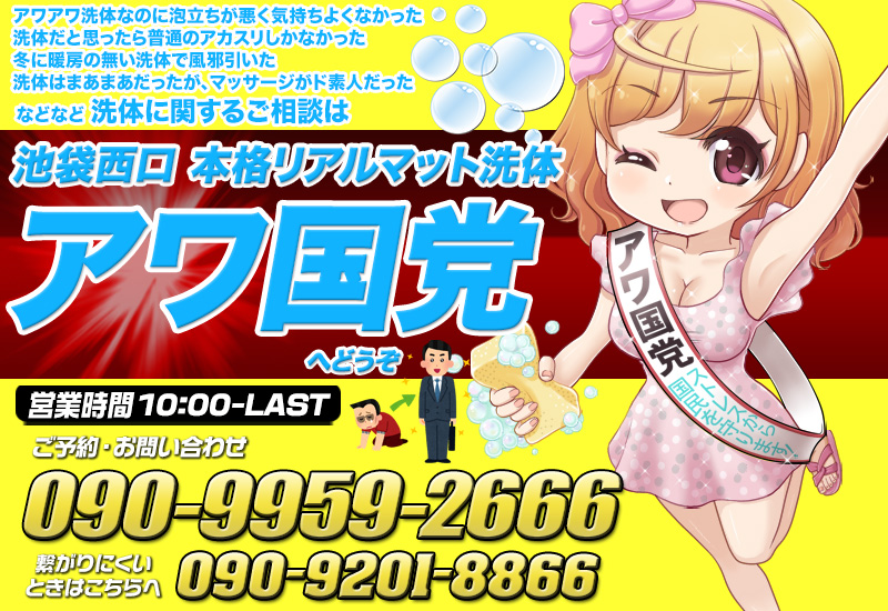 池袋西口泡洗体エステ「アワ国党」営業時間: 10:00〜LAST